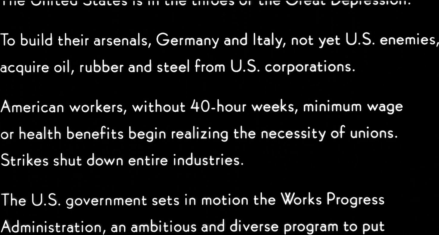Нью-Йорк, 1936 год. Америка все еще страдает от последствий «Великой депрессии». В то время как богатые люди финансируют агрессивные проекты Муссолини, покупая произведения искусства у итальянской фашистки, графини Маргариты Сарфатти, бедные люди пытаются заработать пять центов, выступая на улицах. Мультимиллионер Нельсон Рокфеллер приглашает авангардного художника Диего Риверу создать фрески в вестибюле своего нового «Рокфеллер Центра».
